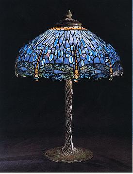 bronze, 31 1/2 x 22 inches, Hanging-head Dragonfly Lamp, c. 1900-1910, leaded